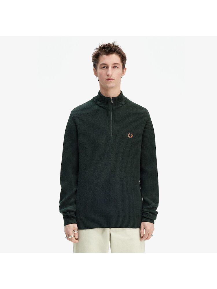 Fred Perry [sharp] Textured Half Zip Knit Night Green Afpm2436540 Q20 qzgAfpm2436540 Q20