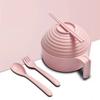 Snabbnudelskålset 5 st Vetehalm Servisset med lock Skål Sked Gaffel Ätpinnar Bärbara Stor Kapacitet Ramen Skålar