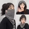 Damstickad rutig öronhängande vindtät mask och halsduk för höst/vinter utomhus nackskydd