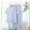Cotton Plaid Design Men's Trouser Pajamas Homewear Suit for Autumn Thin Short-Sleeved Trousers Plaid Homewear Pyjamas Men
