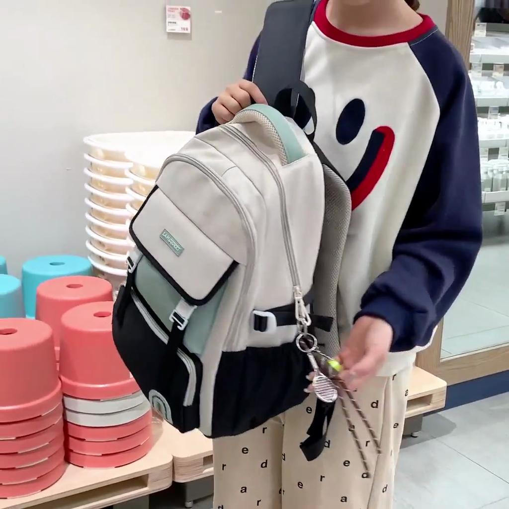 Student Skolväska Ryggsäck Stor Kapacitet Dam Färgblock Ryggsäck