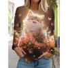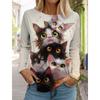 Cute Cat Women's Long Sleeves T-Shirt Round Neck Long Sleeved Autumn Animal Clothing Holiday Gift Clothing Fashion Party T-Shirt