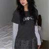 Dam Y2K Topp O-hals Falsk Dubbel Kontrastrandig Långärmad Blomma Casual T-shirt