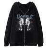 Omfamna din edgy stil med denna unisex-hoodie, designad i en djärv Harajuku-estetik. Denna hoodie är tillverkad av högkvalitativ bomull och erbjuder en bekväm, lös passform som är idealisk för lager-på-lager.. Den har en skräddarsydd halsringning och långa ärmar, vilket säkerställer värme och stil.. Den utmärkande designen inkluderar ett gotiskt dödskallemönster, vilket tillför en unik touch. Denna hoodie är utrustad med en robust metalldragkedja och kombinerar funktionalitet med mode, vilket gör den till ett mångsidigt tillskott i din garderob.