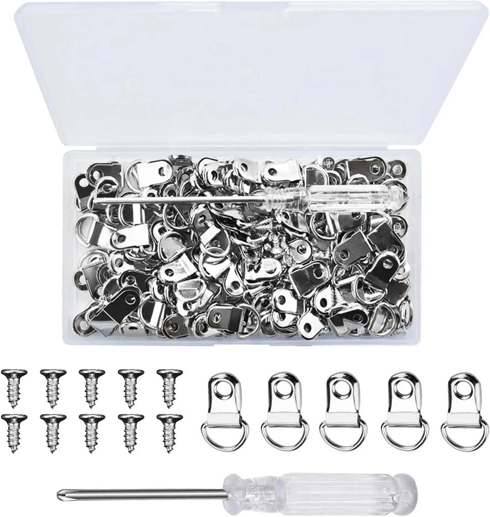 100 st Metall Foto Bildram Väggmontering Hängare Krok Hängring Liten Triangelring Bildhängare med Skruvar