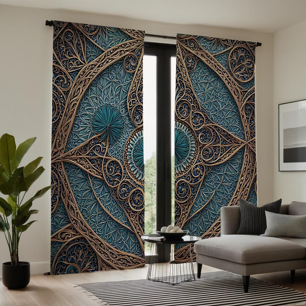 2 st HD Sydostasiatisk etnisk bakgrund snidad dekorativ gardin Blå digitaltryckt gardin Heminredningsstil decora