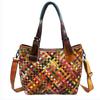 Läder vävd väska flerfärgad avslappnad street etnisk stil handsydd kohud damers bärbar axel damväska