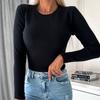 Autumn and Winter Women's Simple Solid Colour O-Neck Long Sleeve Knit Top