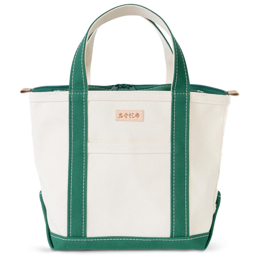 Iwafune Canvas Tote Bag Canvas Bag with Zipper Small Domestic Canvas Made in Japan Ship and Rock Basic Tote Women's (Medium Green)