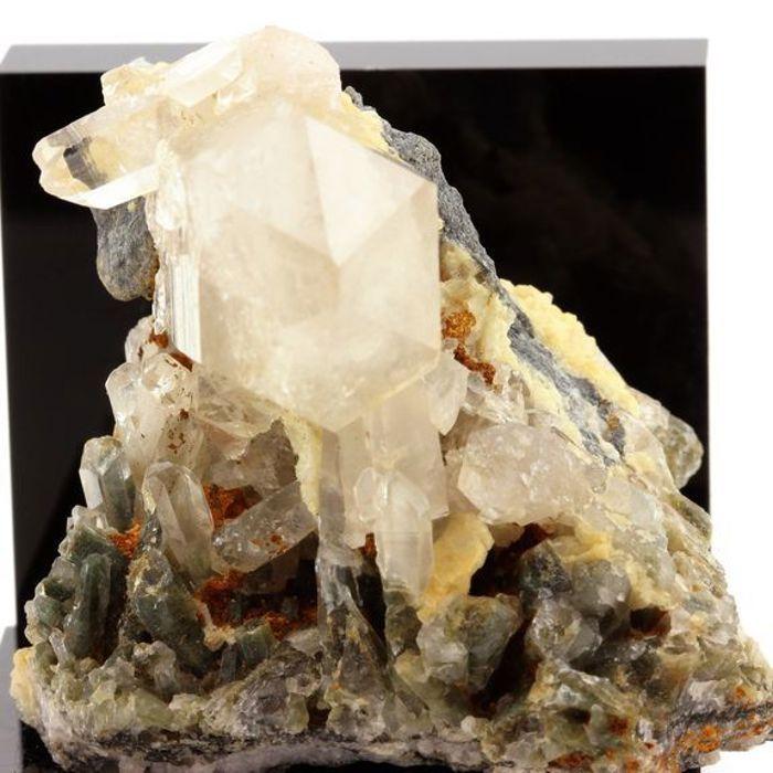 Kvarts, Klorit från Le Freney d'Oisans, Bourg d'Oisans, Isère, Auvergne-Rhône-Alpes, Frankrike. Levereras med ett äkthetsintyg. Mineraler från José Duartes samling (Isère, Auvergne-Rhône-Alpes, Frankrike). Prov funnet år 1985. Stentyp : Kvarts Klorit. Dominerande färg : mångfärgad. Ursprung : Frankrike. Genomsnittlig vikt (Karat) : 561.9 karat. Dimension (mm) : 58 x 54 x 52 mm. Ref. : SKU018158. Silikatmineral bestående av kiseldioxid (SiO₂), bildar hexagonala kristaller och förekommer i en stor mängd färger och former. Säljaren bekräftar att dess produkter följer alla tillämpliga lagar och erbjuds endast om de följer Jooms policyer och europeiska lagar om produktsäkerhet och överensstämmelse.