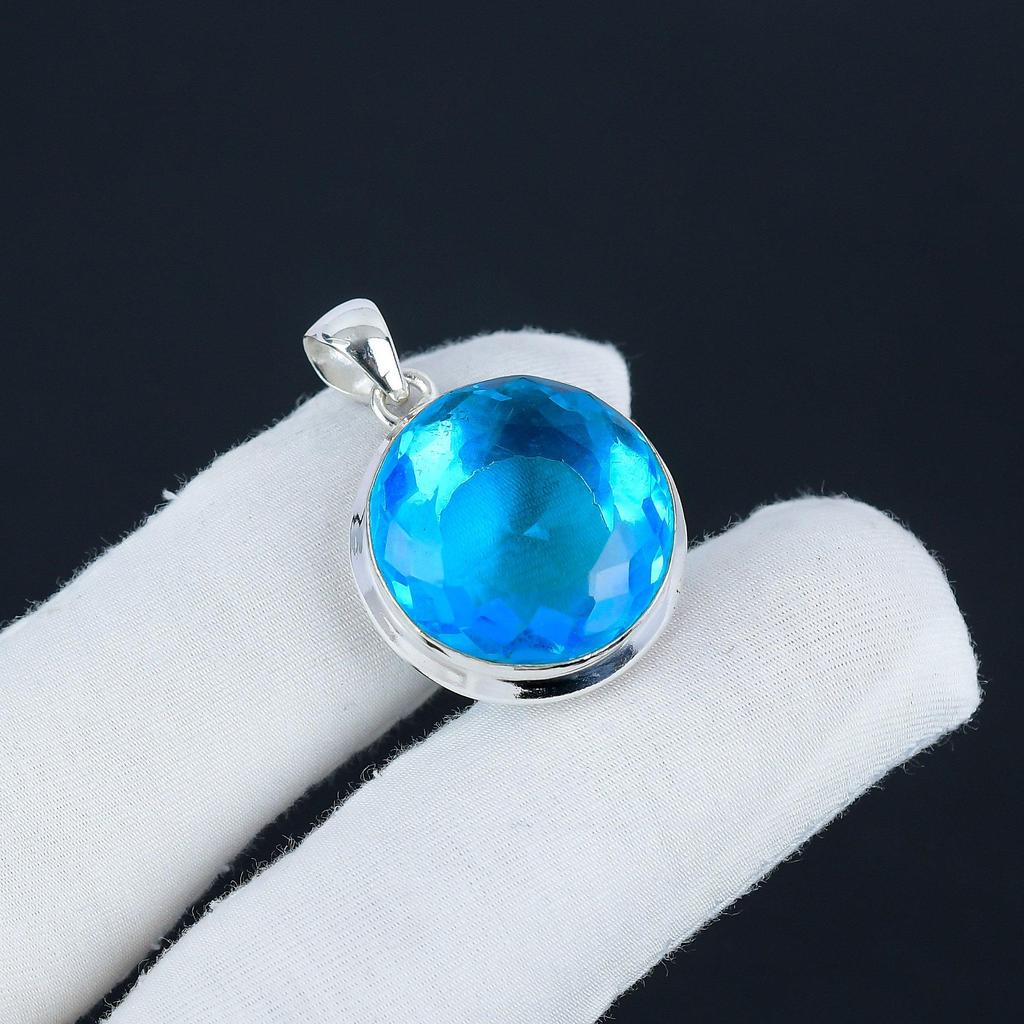 Vackert Siwss Blå Topas Ädelsten Silverhänge i 925 Sterling Silver - Handgjord Oval Design, Vardags Smycken Fest Smycken Gåva
