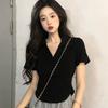 Kortärmad T-shirt Dam Kort Axel T-shirt Sommar Nisch Designkänsla Amerikansk Retro Blus Polotröja