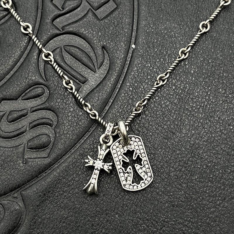 Crowe Necklace Sterling Silver Old Vintage Full Diamond Cross Double Pendant Hip Hop Niche Sweater Chain