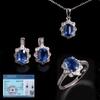 Luxury Deep beautiful blue natural Kyanite ring Earrings necklace set Elegant precious female wedding & banquet gifts 925 silver
