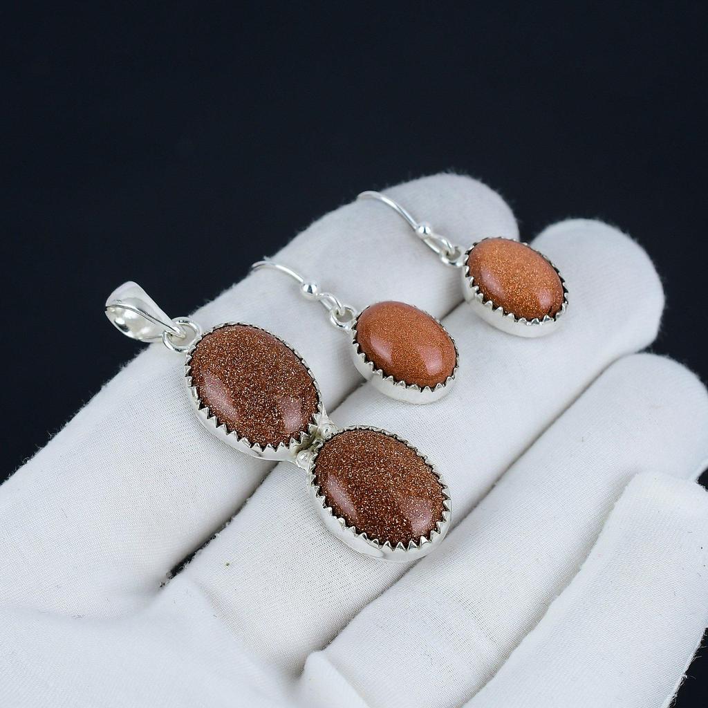 Natural Red Sunstone Pendant Set, Red Sunstone Gemstone Handmade 925 Sterling Silver Earring Pendant Set For Women Pendant Party Wear Gift