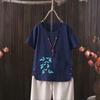 Perfect for summer, this casual T-shirt features a dragonfly print that draws inspiration from European and American styles. Made from a comfortable blend of cotton and hemp, it provides a lightweight and breathable feel. The short-sleeved and V-neck design adds a touch of elegance while ensuring an easy fit. Perfect for going outside in warm weather, this T-shirt effortlessly combines style with comfort.