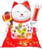 The beckoning cat has been popular in Japanese culture since ancient times, and the way the cat's hand gestures to invite people is so cute. It has been valued as a lucky charm for bringing happiness, attracting others, and bringing good luck with money. This electric beckoning cat's left arm swings back and forth with battery or USB power. Let's attract good luck with this move. It is suitable not only as a gift to ward off evil spirits and matchmaking, but also as a gift for improving luck, family safety, and praying for success in school entrance exams. Of course, this cute face and hand movements will soothe your heart when placed in a corner of a store, cash register, or reception desk as a lucky charm for a prosperous business. It will also be effective as an ornament in the entryway, living room, drawing room, study, etc. On the left hand is written ``Shizai Shinpo.'' It is a symbol that brings dreams to people as a symbol of fortune and good luck. Please use this plump electric beckoning cat as it carries a treasure bucket on its right arm, wishing for business prosperity.