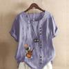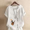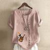 Women's Fashion Music Dog Prined Short Sleeve T-shirt Loose Cotton Shirt Casual Loose Summer Blouse Tops Plus Size
