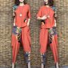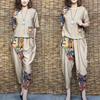 Dam Casual Kostym Sommar Slim Kortärmad T-shirt Topp Harlan Croppade Byxor Plus Mode Bomull Linne 2 Tvådelat Set