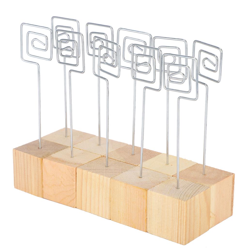 10 st Fotohållare Massiv Träbas Notis Meddelandekort Bild Metallklämma Ställ Hantverk