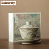 160ml Ru Ugn Keramisk Gaiwan Elegant Bergslandskap Blomma Mourh Te Terrin Hushålls Te Tillverkare Lock Skål Cha Ornament