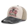 Ny Unisex Tvättad Bomullskeps Skulltryck Distressed Basebollkeps Män Kvinnor Justerbar Casual Utomhus Mode Pappakepsar