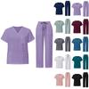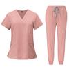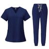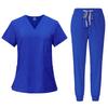 Summer V-neck Models Short-sleeved + Lace-up Trousers Doctor Short-sleeved Overalls Two-piece Set of Quick-drying Elastic Hand-washing Clothes