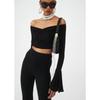 Women's Summer Big Flared Sleeves Slim Sexy Line Collar Top