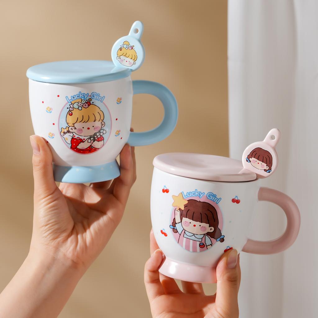 Milk Fufu Mug with Lid Spoon Comics Kids Ceramic Cup High End Couple Water Cup Internet Celebrity Breakfast Cup
