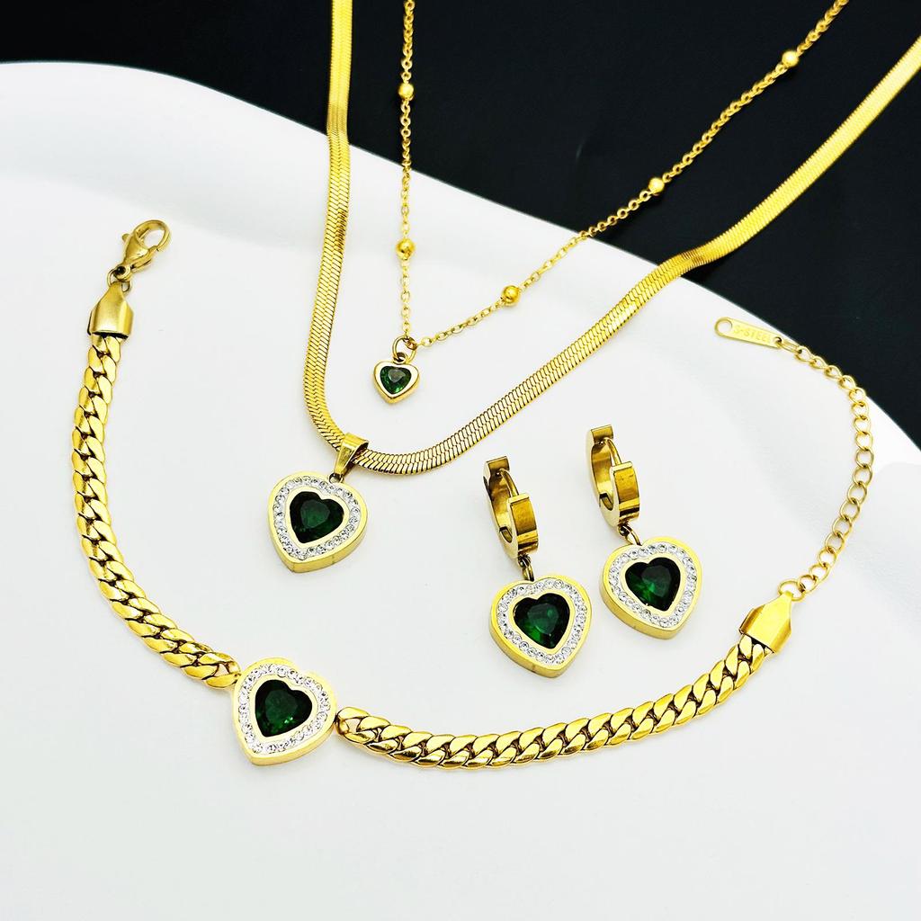 Smaragdgrön Ormbenskedja Hängsmycke Halsband - Titanstål Damset