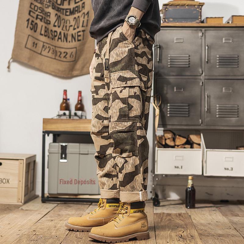 2024 Spring Men's Retro Camouflage Wide-Leg Overalls