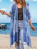 Dam Boho Chiffon Kimono Kofta, Öppen Framtill, Strandöverdrag, Casual Semesterstil, Ytterkläder för Solskydd