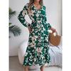 Kvinnors höst/vinter Casual blomma midja instoppad långärmad volangklänning