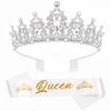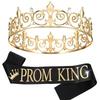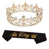 Party Royal Crown med skärp för män Kvinnor Födelsedag King Rhinestone Crown Shoulder Wrap Set Kvällsfestrekvisita tillbehör