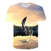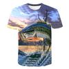 Sommar Rundhalsad 3D Roligt Fiskmönster Tryckt Topp Trendig och Avslappnad Lös Kortärmad Herr T-shirts