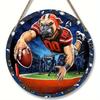 American Football Round Wooden Sign, home Room Holiday Festivals Front Sence Door Wall Hangng Art Sign Decor, Gift for Rugby Fans