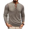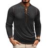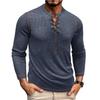 【KLASSISK DESIGN】Den grundläggande crewneck-t-shirten för män med henley-stil, med dragsko, kraftig lång ärm, normal passform, enfärgad, V-ringning. Klassiska och slitstarka långärmade höstskjortor.