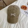 Pink Bow Baseball Cap for Women JK Korean Washed Cotton Snapback Hat Summer Adjustable Embroidered Girls Dad Hats