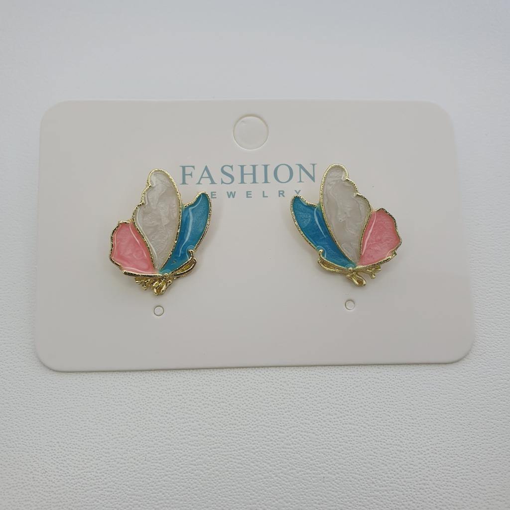 S925 silver needle temperament small fresh butterfly stud earrings Korean version sweet dripping oil contrasting earrings simple earrings women