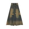 Dam 2024 Nostalgisk Retro A-linjeformad Jeanskjol med Hög Midja, Rå Kant och Ripped Detaljer