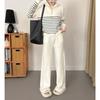 2024 Koreansk Sommarmode: Dam Lösstickad Topp & Högmidjade Vidbenta Byxor Set