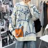Men's Hong Kong Style Cartoon Sweater – Loose Fit, Trendy, Round Neck, Spring/Autumn.