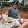 Herr Trendig Retro Japansk Stickad Pikétröja - Sommar Lös Passform Kort Ärm med Slag