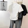 New Summer Style Half Turtle Neck Waist Short-sleeved T-shirt for Women Simple Pleated Design Slim Short Top