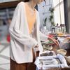 Dam Vår Enfärgad Lös Bekväm Stickad Kofta Enkel Fritid Långärmad Solskjorta