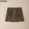 VONDA Women Zipper Waist Bow Knot Solid Color Netyarn Hem Mini Skirts