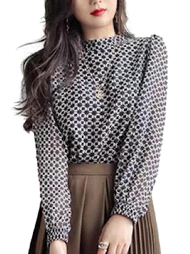 Printed Long Puff Geometric Sheer Stand Korean Tall Sweet and Spicy Mix Design Short Looks Silky Summer Looks Looks Designed Fashion [J-Scott] Blouse,