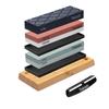 of 9 Knife sharpening whetstone Rough medium finishing large resurfacing knife sharpening fixed angle holder bamboo leather blue for home manual
