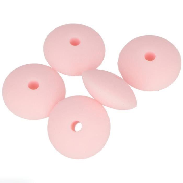 Lot de perles plates en silicone - 12 x 7 mm - Rose Poudré - 5 pcs