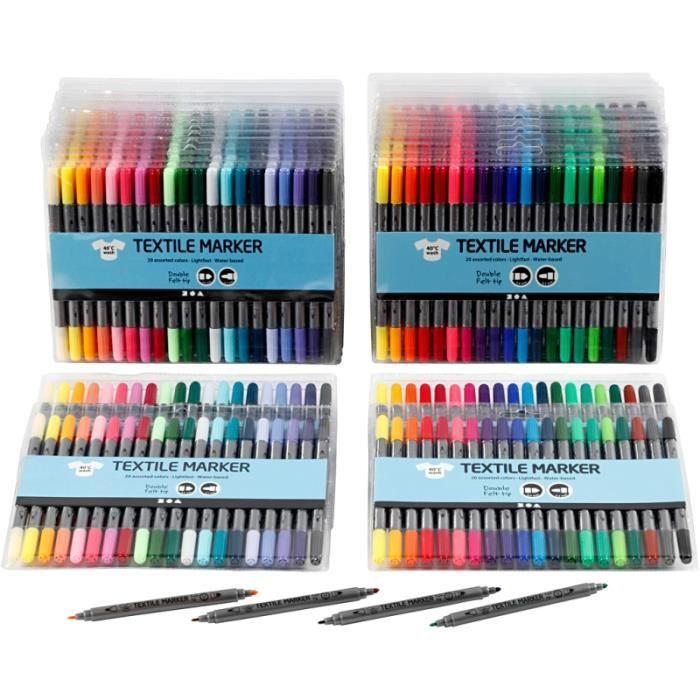 Feutres Textile, Trait: 2,3+3,6 Mm, Couleurs Classiques, Couleur Extra, 24X20Pièces